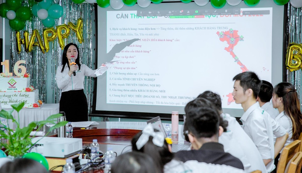 Sợi chỉ đỏ xuyên suốt chị muốn truyển tải tới mỗi cán bộ, nhân viên đã, đang và sẽ làm việc tại Vinh Gia là chất lượng sản phẩm phải là hàng đầu, khách hàng là trọng tâm, con người là then chốt.