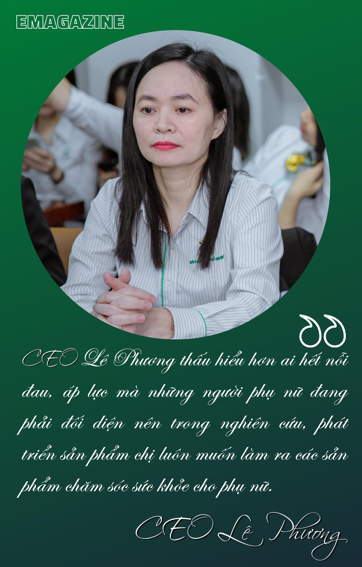 Trước khi là một dược sĩ, một doanh nhân Lê Phương cũng là một phụ nữ với thiên chức làm vợ, làm mẹ như bao người. Do sinh nở khó khăn, chị càng thấu hiểu hơn ai hết nỗi đau, áp lực mà những người phụ nữ đang phải đối diện, nên trong nghiên cứu, phát triển sản phẩm chị luôn muốn làm ra các sản phẩm chăm sóc sức khỏe cho phụ nữ.