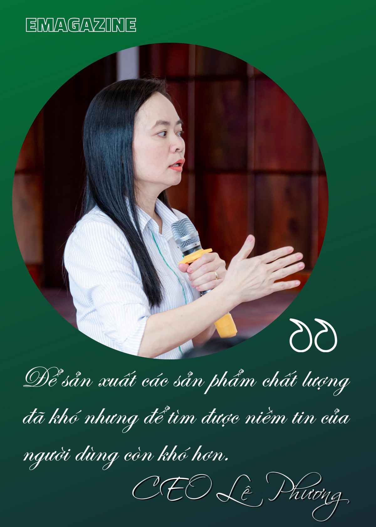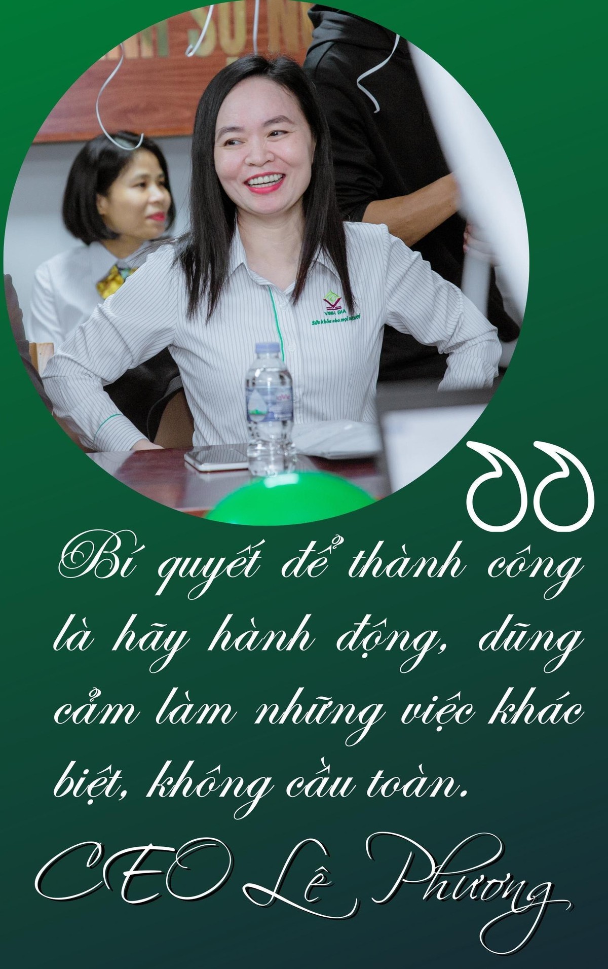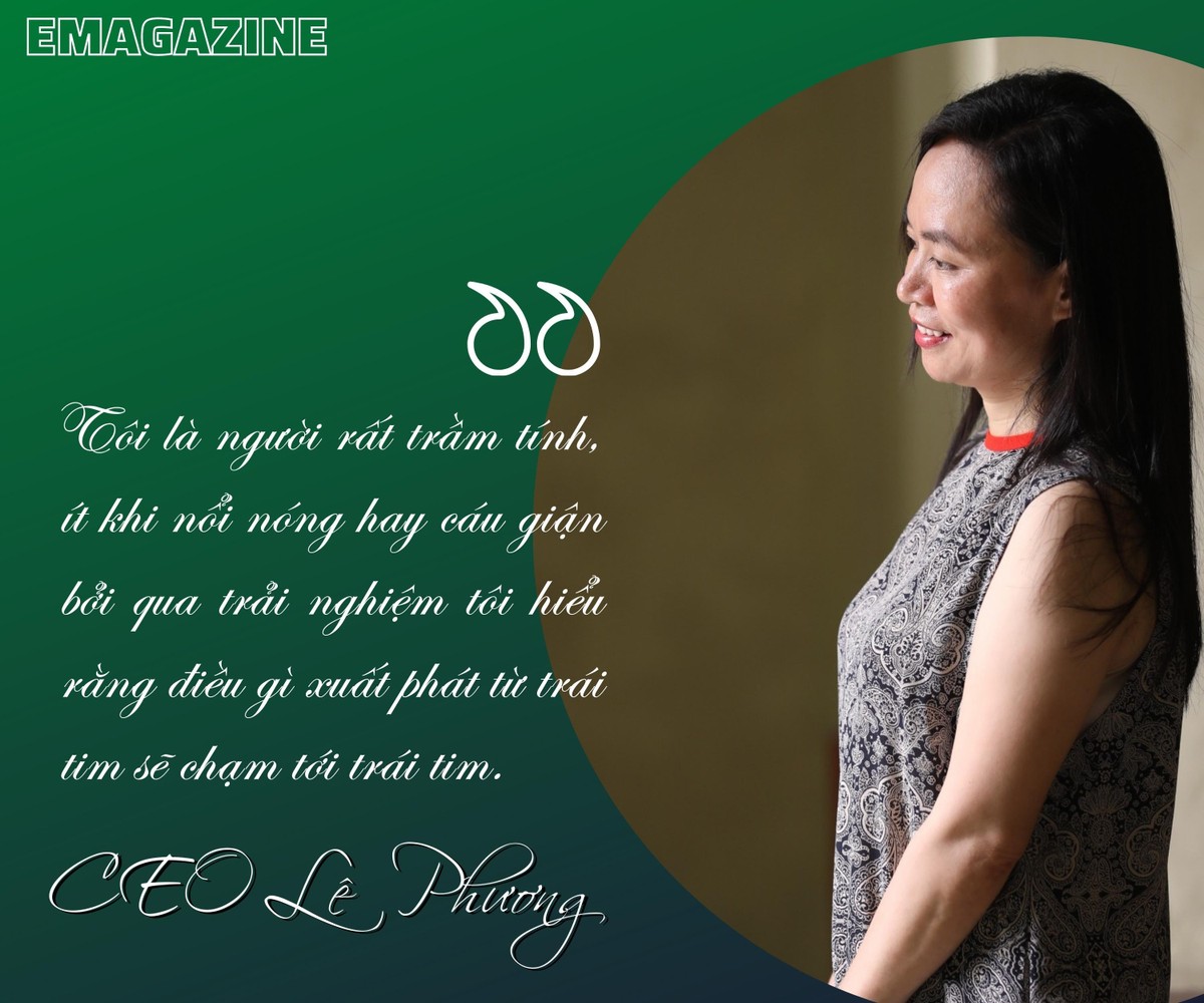 CEO Lê Phương không coi việc trở thành doanh nhân là một áp lực, bởi quan điểm của chị là sống, làm việc chân thành, thẳng thắn như bản tính vốn có, không ngại thể hiện sự tự tin, quyết liệt, và một chút quyết liệt cần có của người đứng đầu.