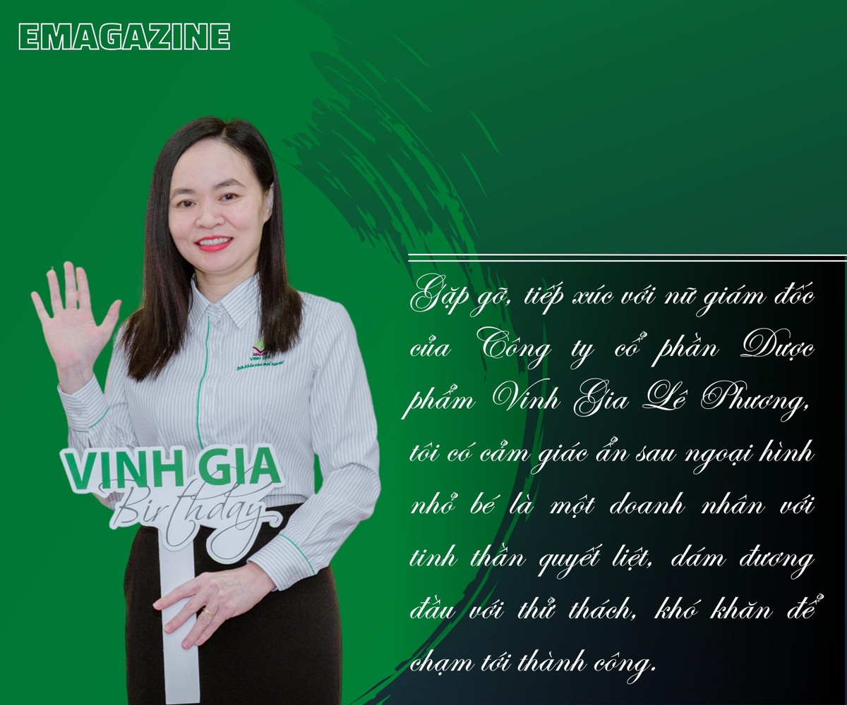 Gặp gỡ, tiếp xúc với nữ giám đốc Công ty cổ phần Dược phẩm Vinh Gia - Lê Phương, tôi có cảm giác ẩn sau ngoại hình nhỏ bé là một doanh nhân với tinh thần quyết liệt, dám đương đầu với thử thách, khó khăn để chạm tới thành công.