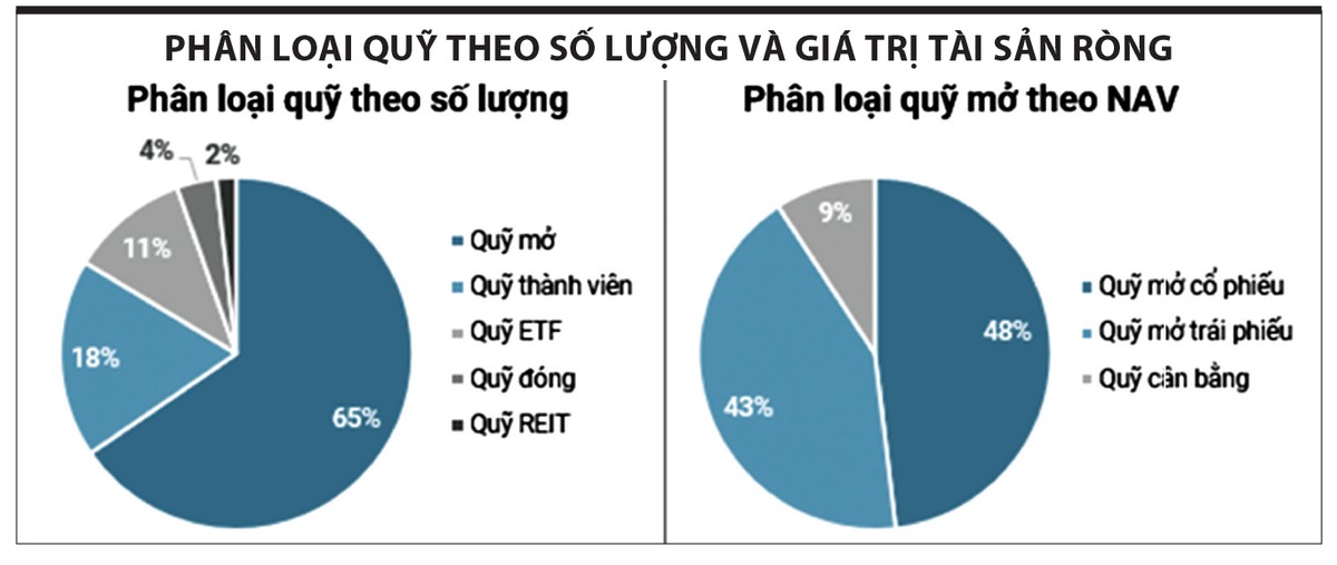 Trong số tài sản đầu tư vào chứng chỉ quỹ, hiện nay tập trung nhiều nhất vào các quỹ mở (cổ phiếu và trái phiếu) do đáp ứng được nhu cầu thanh khoản cho nhà đầu tư. Trong đó, quỹ mở cổ phiếu chứng kiến sự tăng trưởng mạnh mẽ hơn từ năm 2021 đến nay.