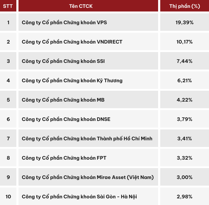 Theo đó, trong quý II/2022, Chứng khoán DNSE chiếm thị phần môi giới cổ phiếu HNX là 3,79%, xếp ngay sau những cái tên quen thuộc trên thị trường, gồm Chứng khoán VPS, VNDirect, SSI, TCBS, MBS và vượt lên trên HSC (Chứng khoán TP. Hồ Chí Minh), Chứng khoán FPT, Mirae Asset (Việt Nam) và Chứng khoán Sài Gòn Hà Nội (SHS).