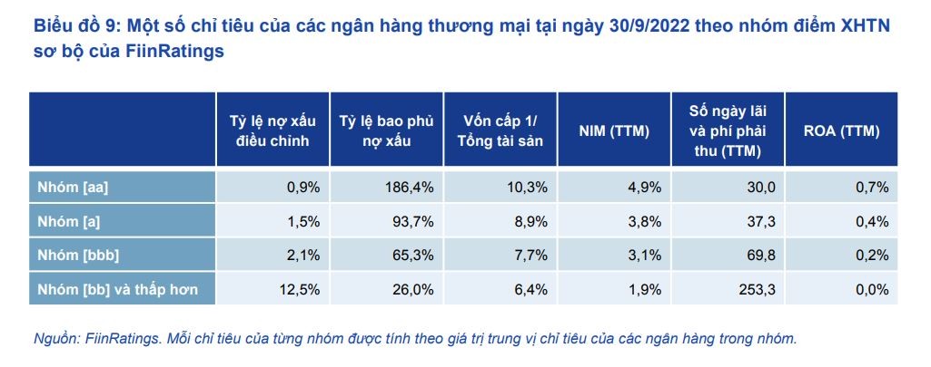 Báo cáo cho biết, lợi nhuận của các ngân hàng có mức điểm xếp hạng tín nhiệm sơ bộ thấp bị ăn mòn gần như toàn bộ bởi các chi phí dự phòng, trong khi tỷ lệ đòn bẩy lại cao hơn hẳn so với các ngân hàng khác. Các ngân hàng này cũng ít có lợi thế về chi phí vốn do không thu hút được tiền gửi không kỳ hạn từ khách hàng mà phải phát hành trái phiếu và huy động tiền gửi với lãi suất cao so với các ngân hàng lớn, dẫn đến việc biên lãi thuần chỉ ở mức khoảng 2%.