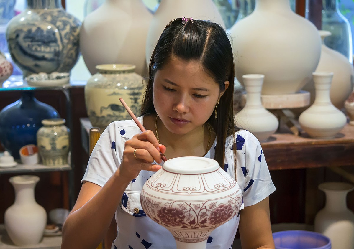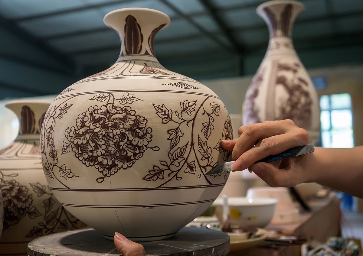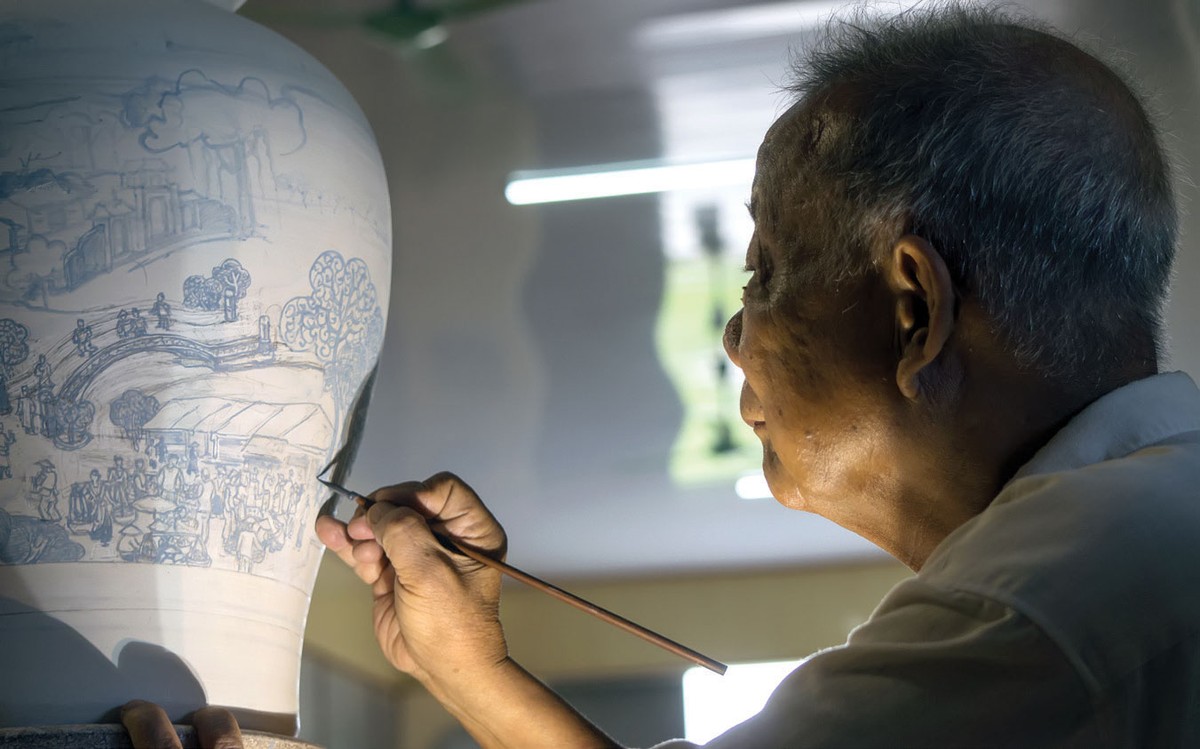 Những hộp bình trà Chu Đậu in hình hoa cúc, hoa sen, chim chích chòe, bồ nông, người dân chài kéo vó... Những chiếc nậm rượu hình rồng trong con tàu đắm ở Cù Lao Chàm, nét vẽ không cầu kỳ trau chuốt, nhưng tao nhã và sang trọng, thanh thoát và thăng hoa.
