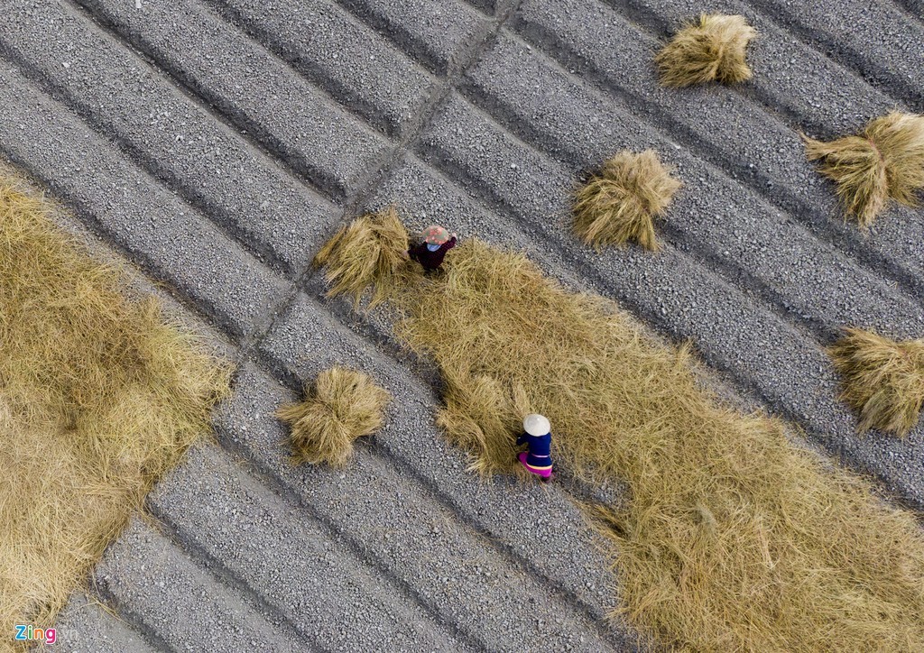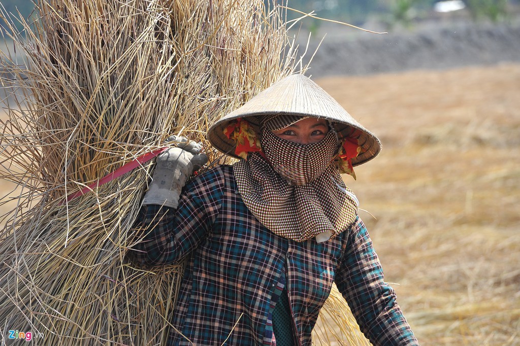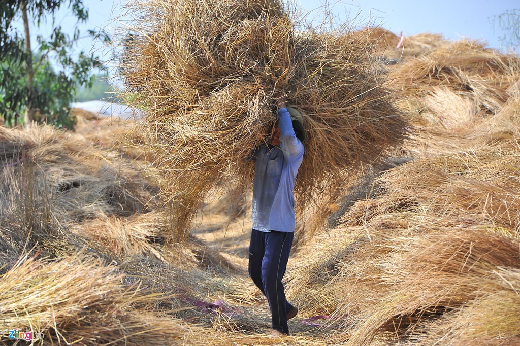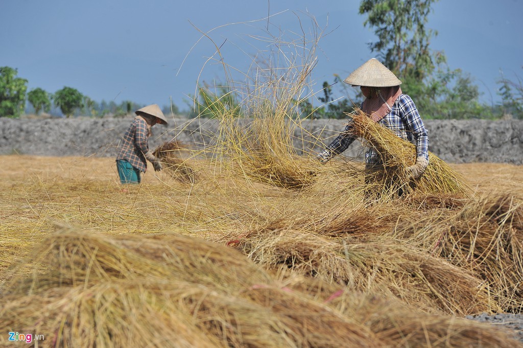 Những người phụ nữ rải rơm khô phủ kín các liếp kiệu đã xuống giống. Công đoạn này mất khá nhiều thời gian.