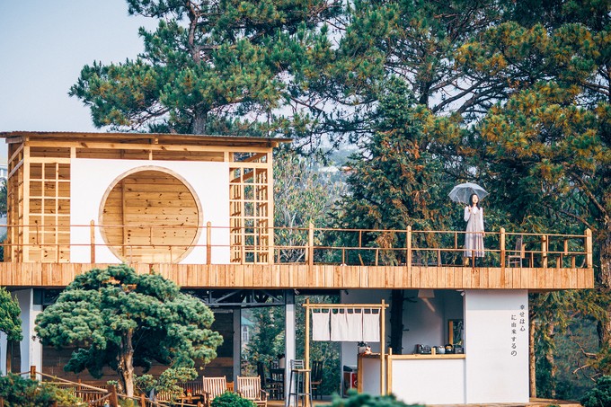 Kokoro Cafe: Mới mở cửa đón khách vài tháng, quán cà phê này thu hút đông khách trẻ nhờ thiết kế mang phong cách Nhật Bản, không gian mở, xung quanh là rừng thông xanh ngắt tạo cảm giác gần gũi với thiên nhiên. Ảnh: Jerry Phạm.