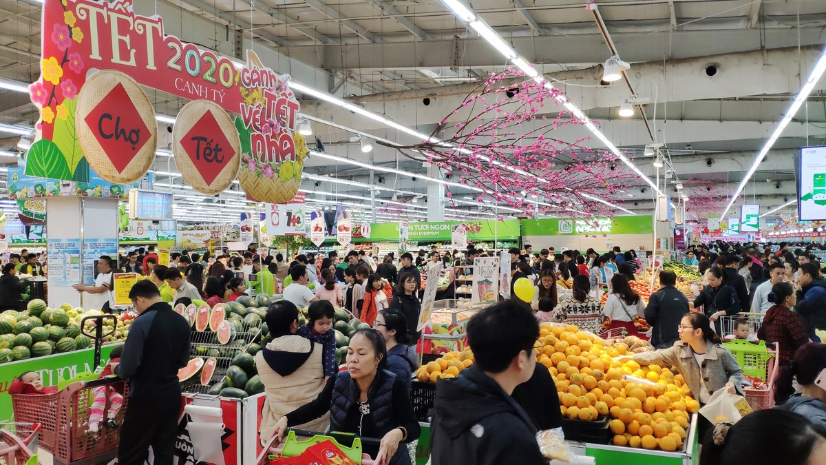 Những ngày cuối năm, nhiều người đổ về các siêu thị để mua sắm chuẩn bị đón Tết. Các siêu thị cũng đã trang trí Tết bắt mắt chào đón khách hàng.