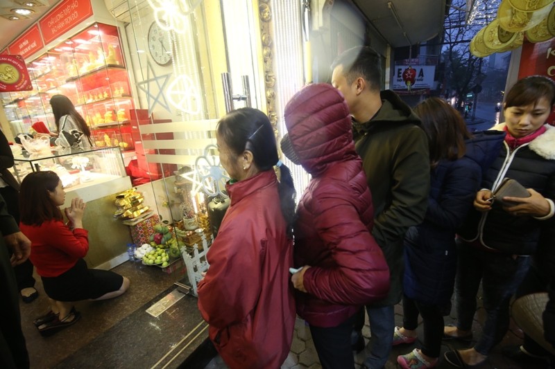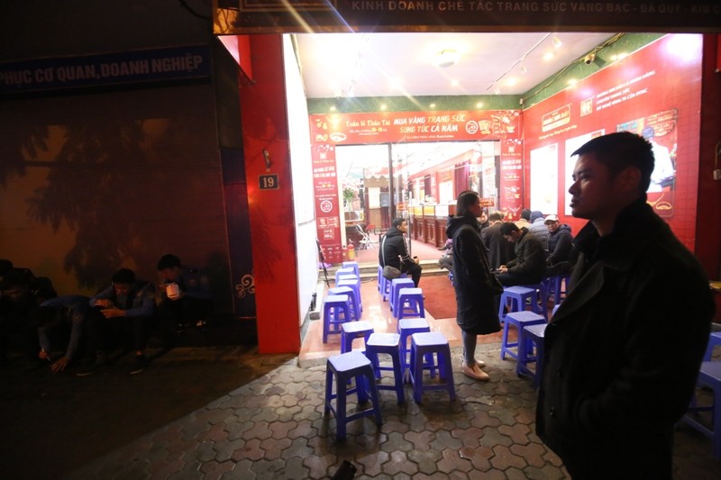 Vào ngày này, các cửa hàng vàng thường xuyên trong trạng thái quá tải từ sớm đến tối. 6h sáng, khách hàng chờ đợi giờ nhà vàng mở cửa trong khi nhân viên vẫn còn đang ăn sáng gần đó
