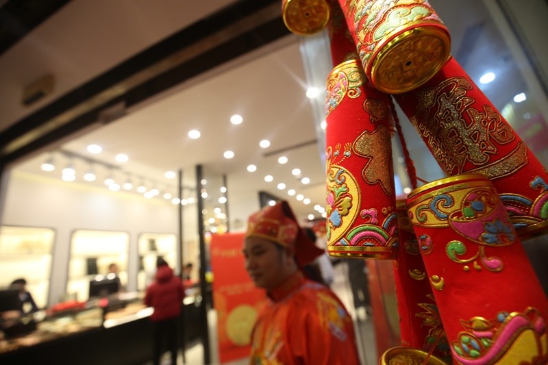 Hình ảnh linh vật năm mới chú chó Thần tài nặng 8,6 chỉ cũng là một trong những sản phẩm được mua nhiều trong ngày Thần tài năm nay