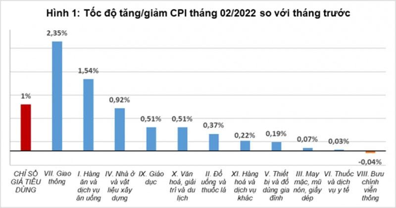 Đây là những nguyên nhân chính làm CPI tháng 2/2022 tăng 1% so với tháng trước; tăng 1,42% so với cùng kỳ năm trước và tăng 1,2% so với tháng 12/2021.