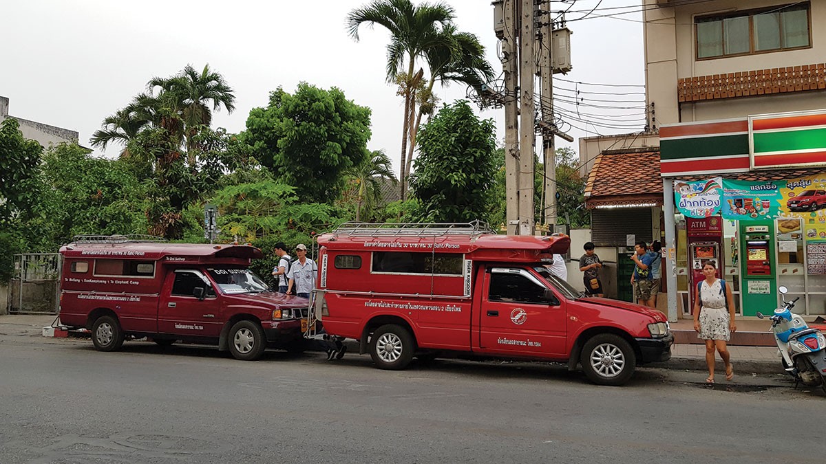 Xe Tuktuk dễ kiếm, nhưng phải biết mặc cả mới được giá hời. Ngoài ra, bạn có thể di chuyển bằng Song Thaew, một chiếc xe đỏ chót y như xe lam Việt Nam phiên bản to gấp đôi. Cứ lên xe là 30 bath/người, bất kể đi đâu.