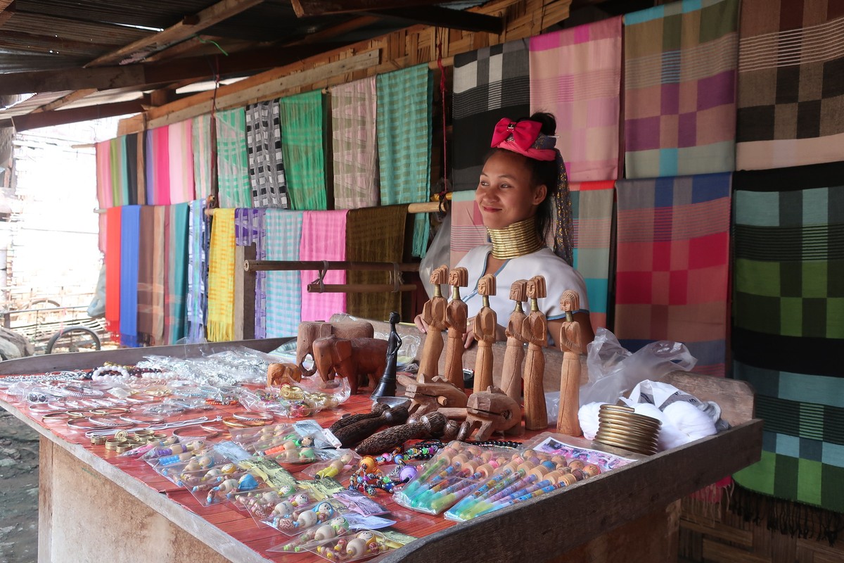 Trong làng, tôi bắt gặp nhiều nhà lá nhỏ bày bán các món đồ lưu niệm có tạc tượng người Long Neck bằng sắt hoặc bằng gỗ. Giá bán những món hàng mỹ nghệ ở đây khá đắt so với đồ ở chợ đêm, nên tôi quyết định không mua. Nhưng hai người bạn Anh bảo đó quả là quyết định sai lầm, vì chắc chắn tôi không thể tìm thấy những món đồ lưu niệm độc đáo như thế ở bất kỳ đâu nữa.