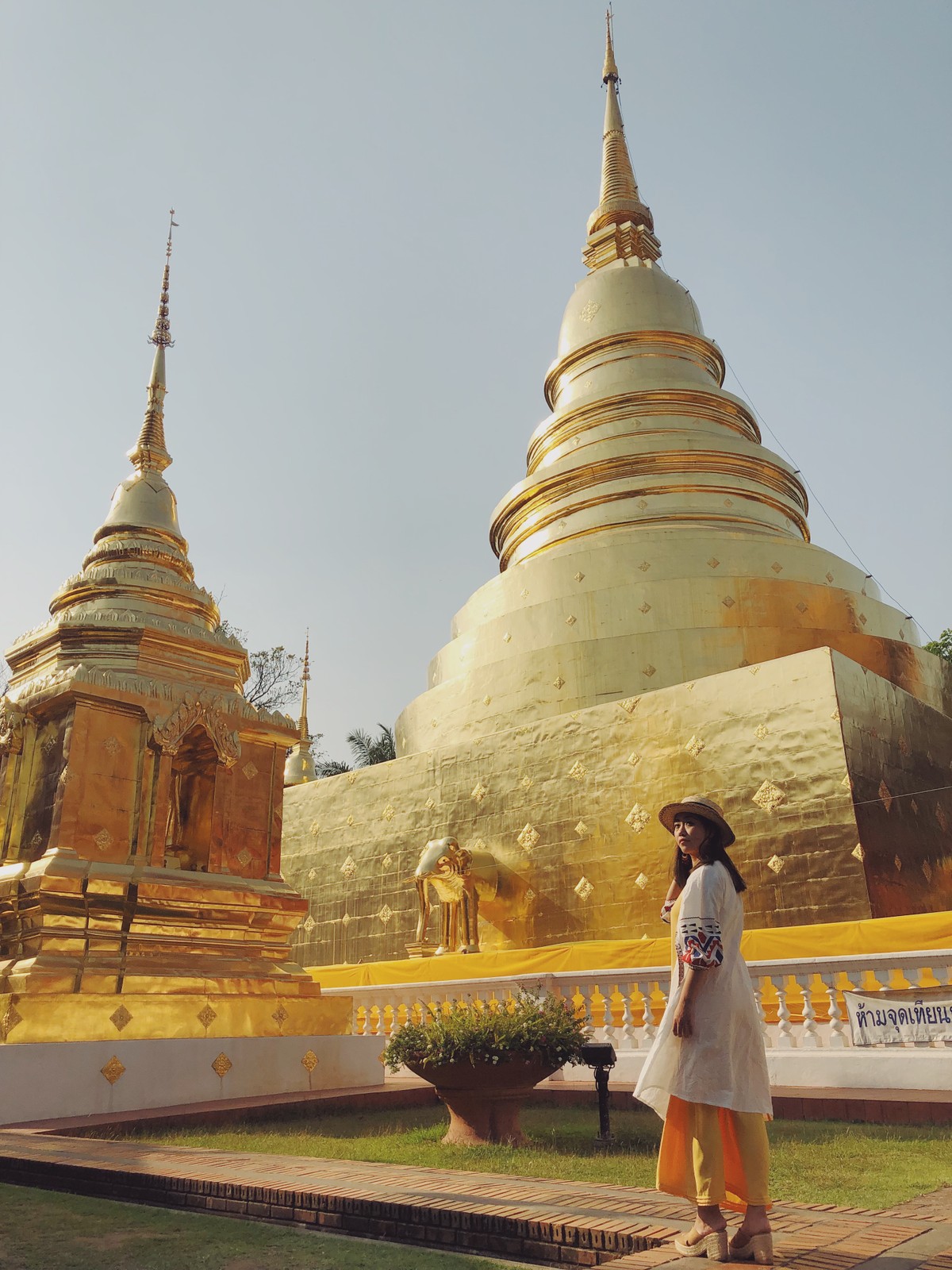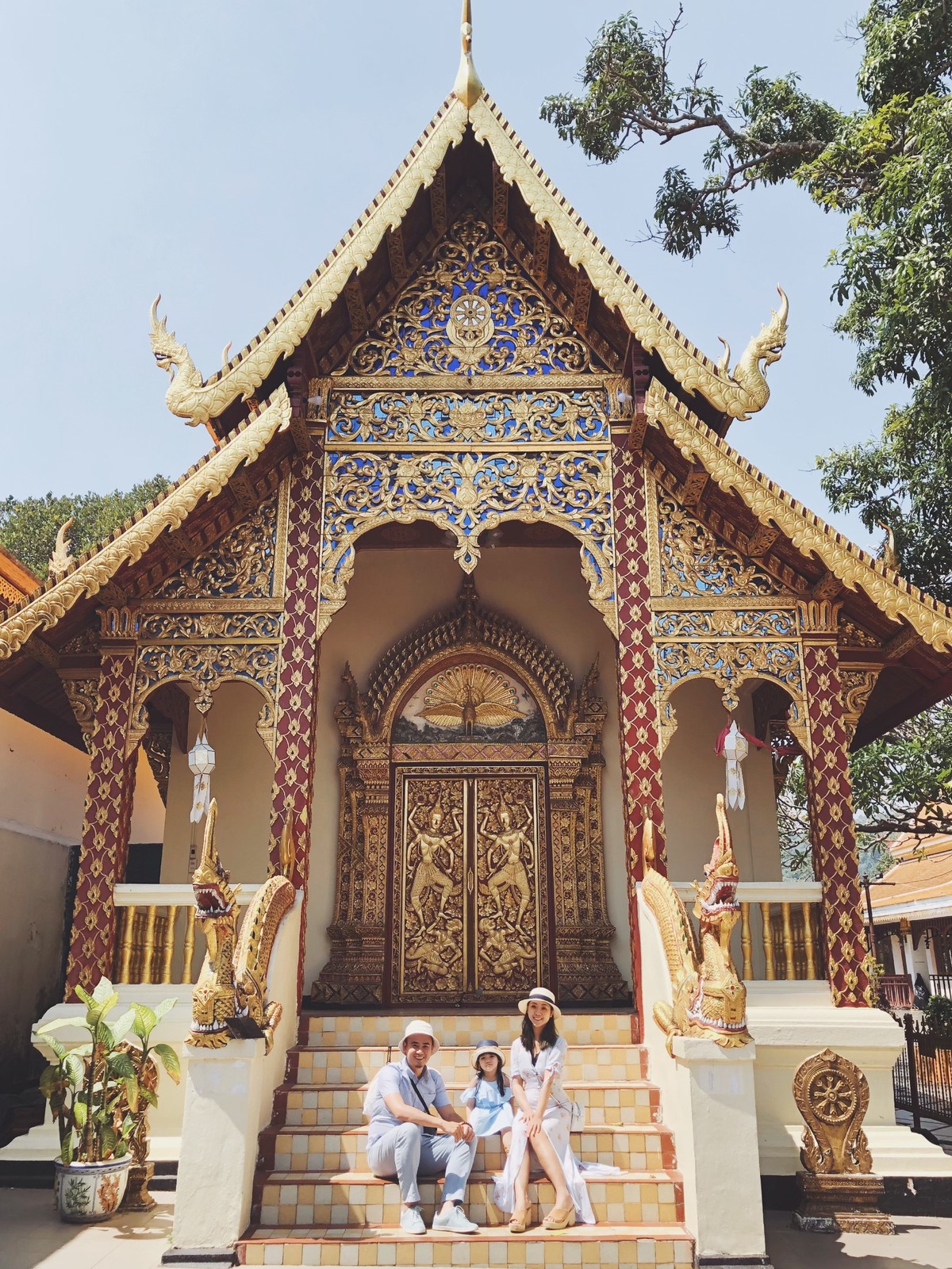 Do thời gian có hạn, tôi chỉ ghé thăm một số ngôi chùa chính. Đầu tiên, tôi chọn đến ngôi chùa xa và nổi tiếng nhất là chùa Wat Phrathat Doi Suthep, tọa lạc trên một ngọn đồi cao 1.100 m. Để tới được đây, tôi chọn đi Song Thaew, vì đường xa và khá ngoằn ngoèo. Tuy nhiên, lần tới nếu đến Chiang Mai, tôi nhất định sẽ thuê xe máy lượn lờ, vì cung đường này xanh và đẹp mê hồn.