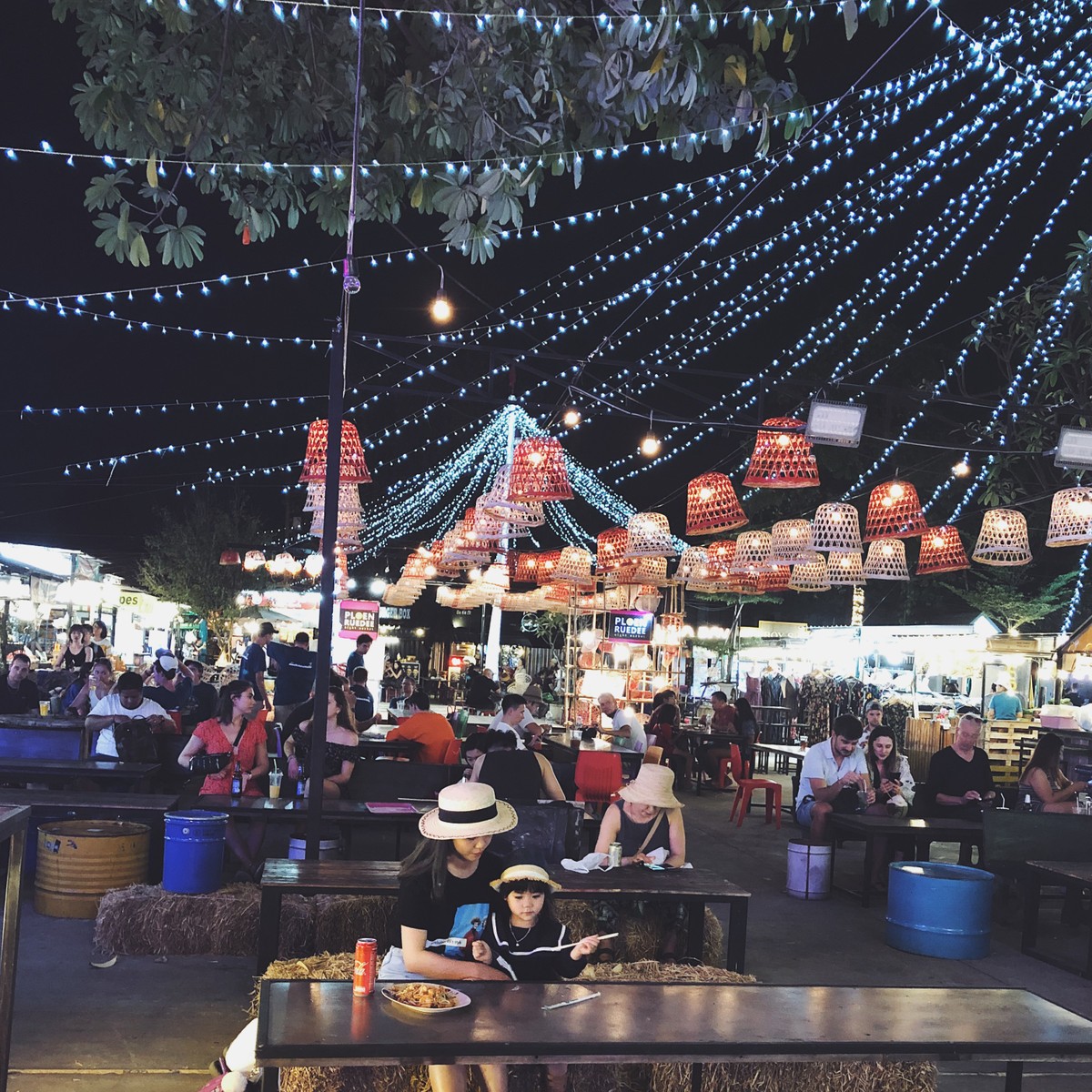 7 giờ tối, tôi quay lại Old City với cái bụng đói cồn cào nên bắt một chiếc Garb di chuyển nhanh sang khu Night Bazzar. Đây là khu chợ đêm to nhất ở Chiang Mai, bán đủ mặt hàng và có tận 2 khu tổ hợp ăn uống: Ploen Ruedee Night Market và Kalare Food Market. Night Bazaar ban ngày là một con phố tẻ nhạt, tầm thường, nhưng khi đêm về thì trở thành ngôi sao.
