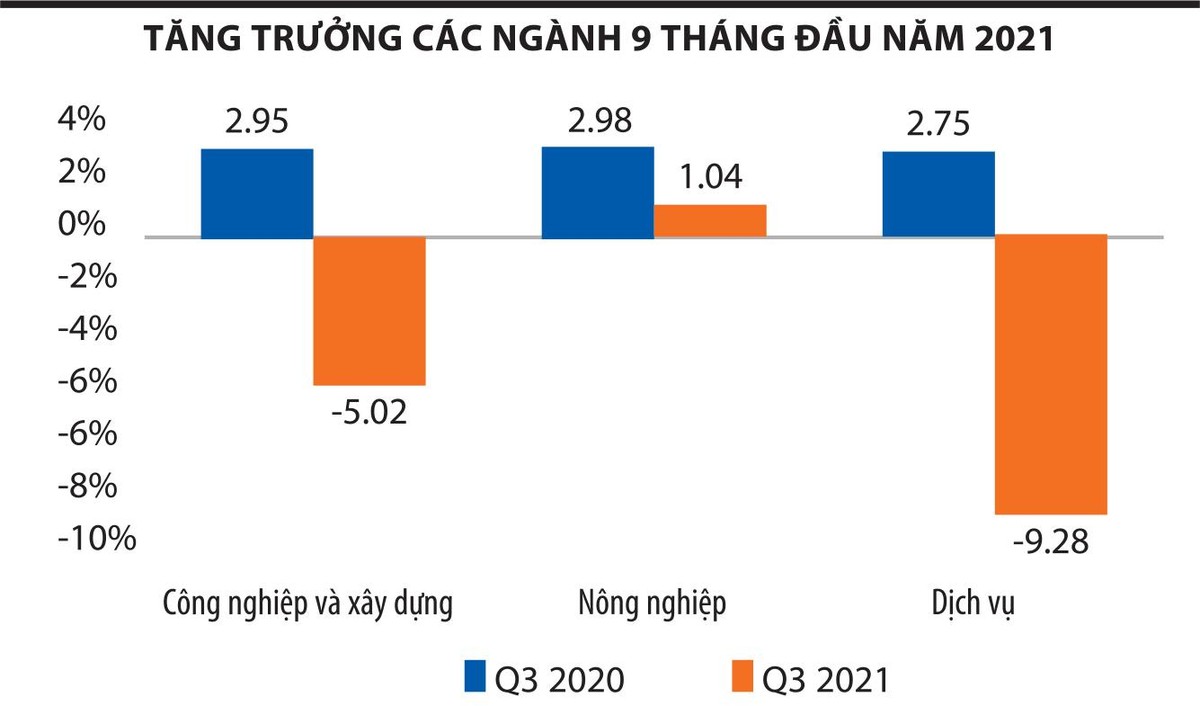 Trong khi đó, ngành dịch vụ đã chạm đáy về tăng trưởng trong nhiều năm qua, các chỉ số đo lường đều sụt giảm tới 50% so với thời điểm trước dịch.