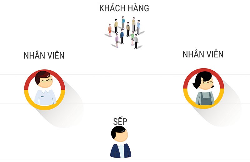 Sơ đồ cũ của các công ty là sếp - quản lý - nhân viên, nhưng ai mới là người tiếp xúc trực tiếp với khách hàng? Đó chính là những người ở nấc cuối cùng. Nếu cho rằng, khách hàng là trọng tâm thì doanh nghiệp hãy đảo ngược lại sơ đồ: khách hàng - nhân viên - sếp. Sếp sẽ thay đổi tư duy với một sơ đồ như vậy và thấy rằng, chúng ta cần cân bằng với những người ở trên. Sếp tốt là người coi trọng nhân viên hơn.