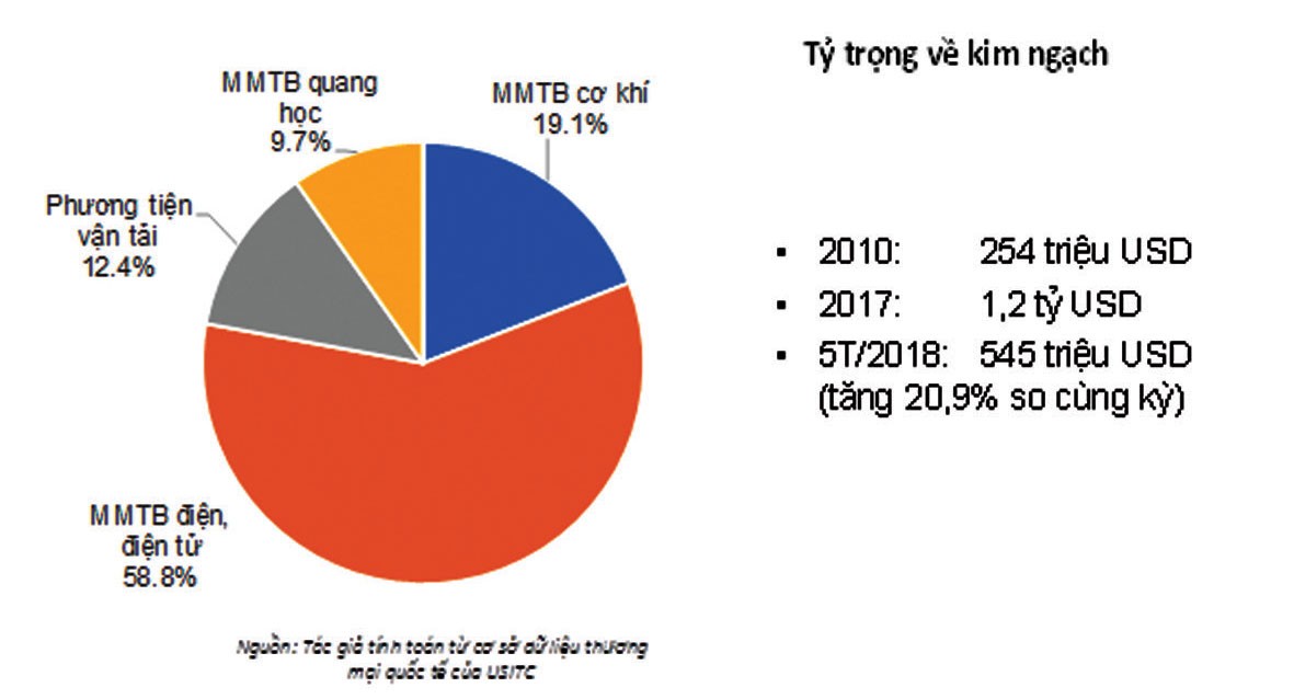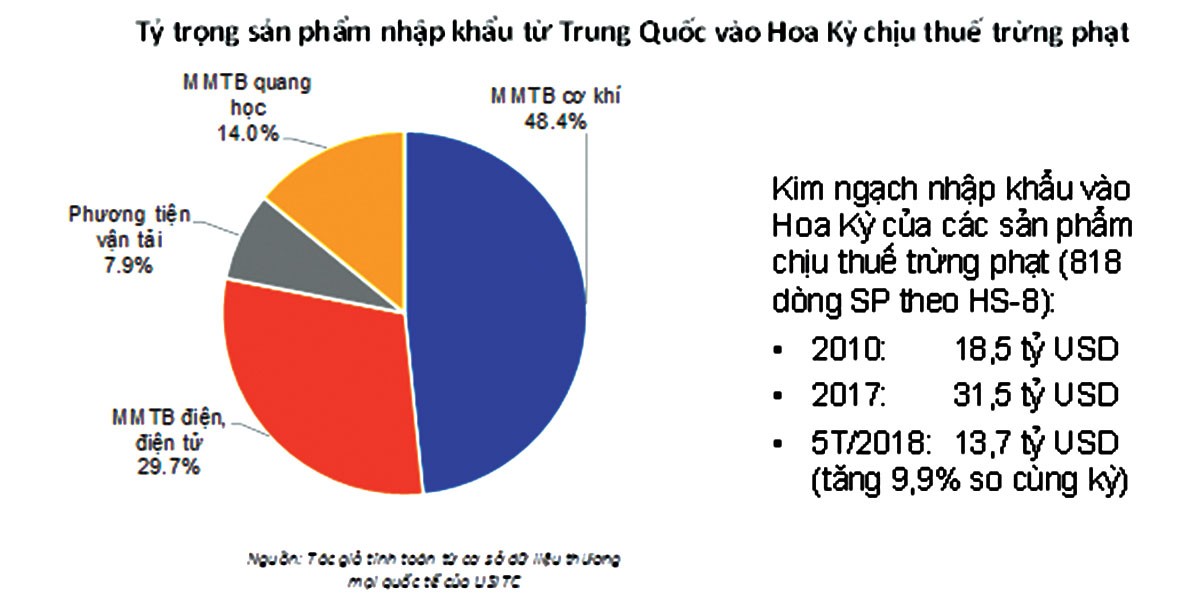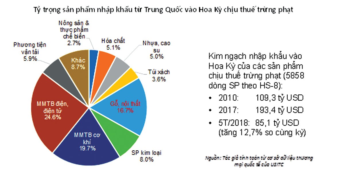 Dựa vào số liệu thống kê kim ngạch nhập khẩu của Hoa Kỳ, trong 818 dòng sản phẩm mà Trung Quốc chịu thuế trừng phạt đợt này, các mặt hàng tương tự của Việt Nam xuất sang Mỹ năm 2017 chỉ có trị giá 1,2 tỷ USD và 5 tháng đầu năm 2018 cũng chỉ 545 triệu USD. Vì thế, cơ hội để các doanh nghiệp Việt Nam có thể tận dụng gia tăng xuất khẩu sang Mỹ khi hàng Trung Quốc chịu thuế là không đáng kể.