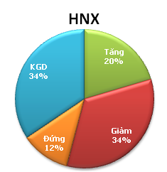 Số mã tăng trên HNX là 80 (chiếm 20,4% trong tổng số 392 mã niêm yết), số mã giảm là 132 số mã đứng giá là 45 và không có giao dịch là 135 mã.