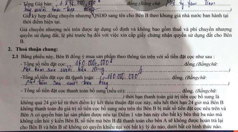 Thỏa thuận đặt cọc với nhiều yêu cầu bất lợi cho khách hàng