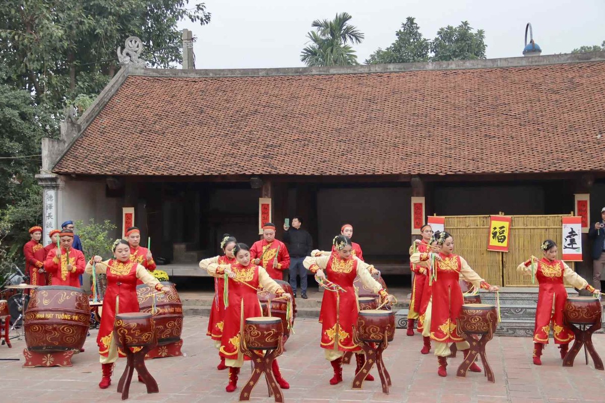 Điểm nhấn không thể thiếu là các màn trình diễn nghệ thuật dân gian đặc sắc như hát văn, hát xẩm, hát chèo và trống hội rộn ràng, mang đến một bầu không khí vừa ấm áp, vừa đậm chất cổ truyền, để lại ấn tượng sâu sắc trong lòng mỗi du khách.