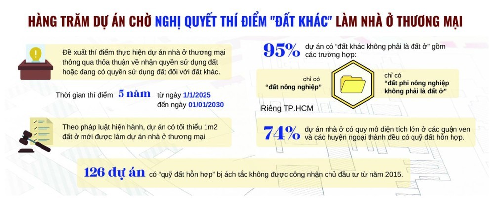 Bên cạnh đó, việc chuyển mục đích sử dụng đất đối với “đất khác” để triển khai dự án nhà ở thương mại cũng gây ra nhiều rắc rối, khi theo quy định, dự án phải có sẵn “đất ở” hoặc “đất ở và đất khác”.