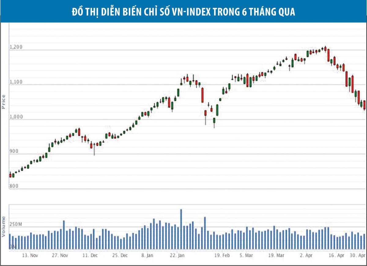 Với diễn biến giảm điểm trong phiên đầu tháng 5, VN-Index đã kéo dài đợt điều chỉnh sau khi đạt ngưỡng 1.200 điểm vào ngày 9/4/2018 và củng cố “bẫy tăng giá” (sau mỗi phiên phục hồi, chỉ số lại giảm mạnh). Hiện VN-Index lùi về sát hơn ngưỡng 1.000 điểm.