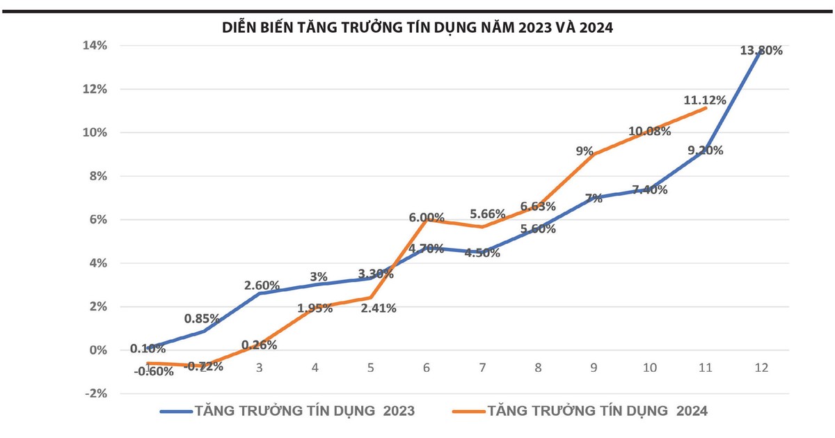 Một yếu tố khác hỗ trợ là ngày 28/11/2024, Ngân hàng Nhà nước đã thông báo tăng thêm hạn mức tăng trưởng tín dụng năm 2024 cho các tổ chức tín dụng, cho thấy nỗ lực của ngành ngân hàng nhằm đạt mục tiêu tăng trưởng tín dụng 15%.
