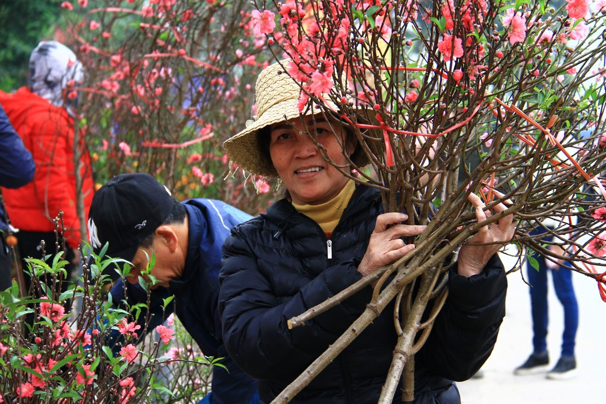 Đào cành nhỏ khá đắt hàng vì nhiều người dân mua về cắm lọ để ban thờ. Ảnh: Thành Nguyễn.