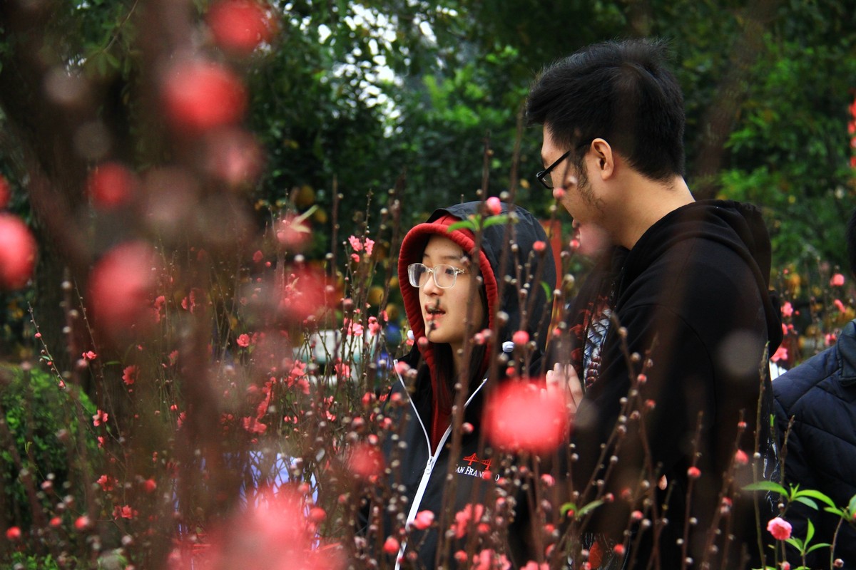 Chợ hoa, cây cảnh Tết luôn tràn ngập tiếng cười và những cử chỉ dễ thương. Ảnh: Thành Nguyễn.