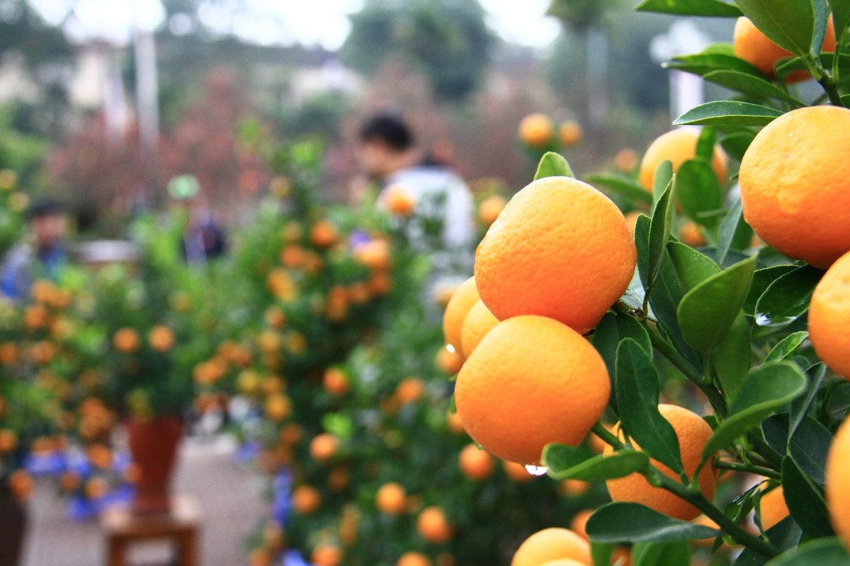 Quất cảnh cũng được bày bán xen kẽ với đào. Ảnh: Thành Nguyễn.