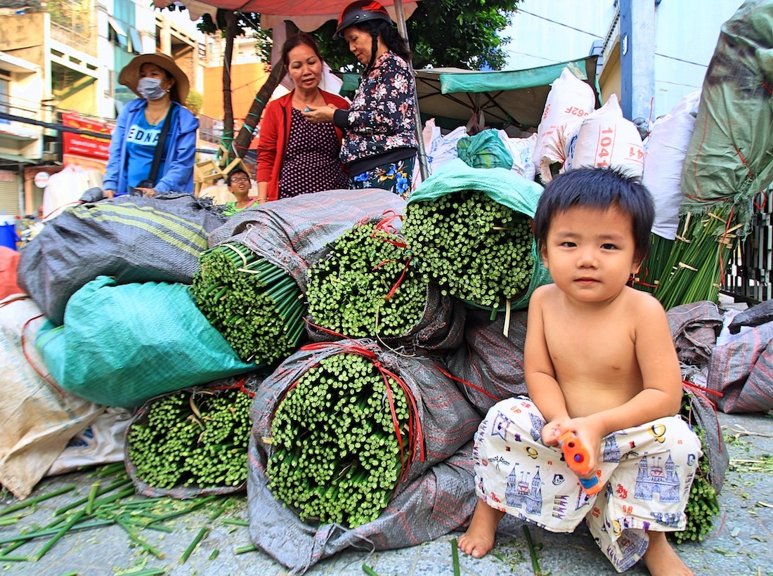 Bà Nga sống tại quận 1, TP.HCM nhưng mỗi năm một lần cả gia đình bà gồm 5 anh, chị, em đến khu vực ngã ba ông Tạ kinh doanh lá dông, lá chuối từ ngày 17 đến 28 tháng Chạp, phục vụ nhu cầu tự tay gói bánh của người dân thành phố.