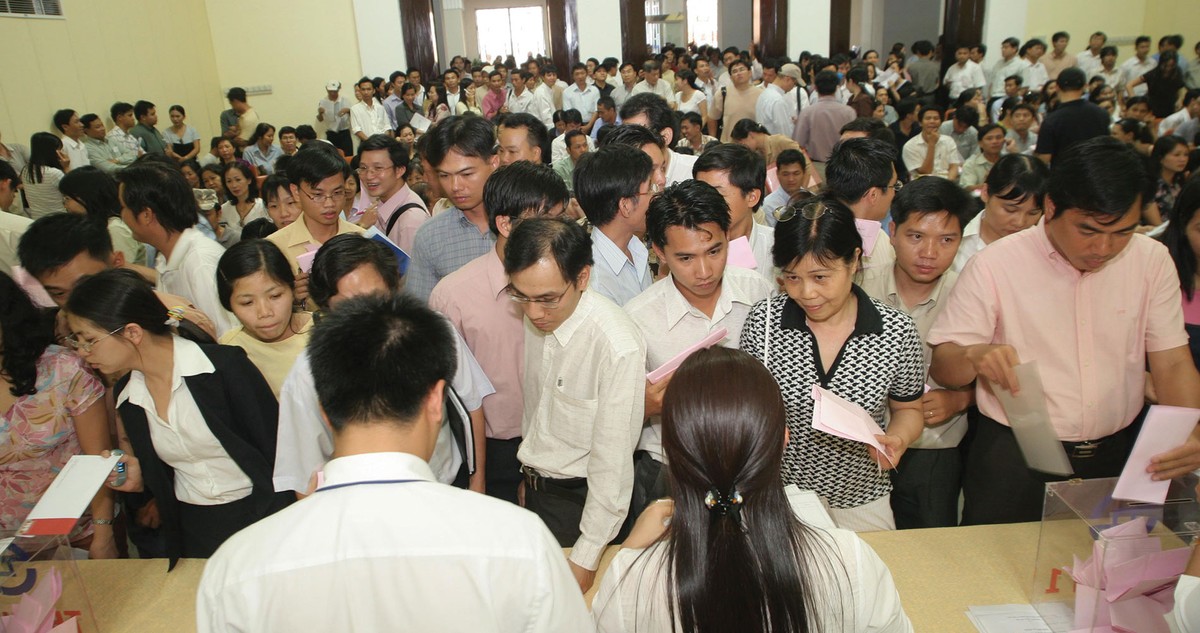 Một thời để nhớ khi nhà nhà chơi chứng. Ảnh chụp đám đông những nhà đầu tư xếp hàng đặt lệnh tại một buổi đấu giá cổ phiếu vào năm 2006.