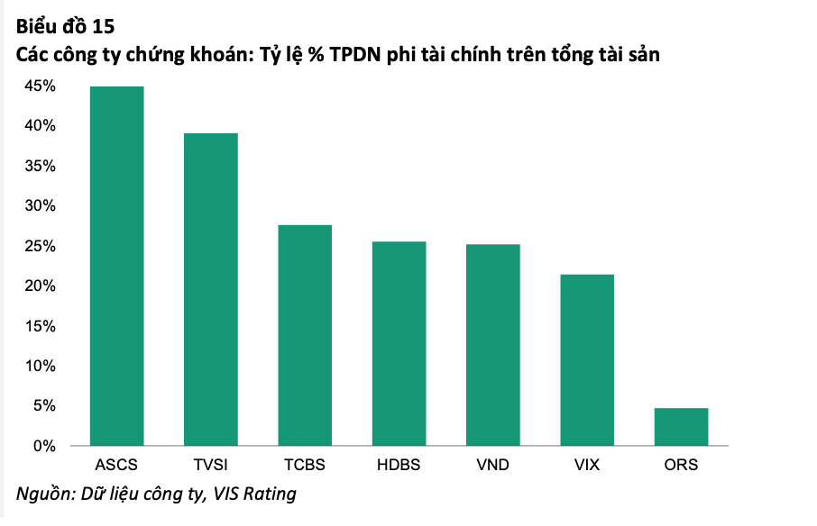 Về phía các công ty chứng khoán, các doanh nghiệp tập trung vào mảng tư vấn phát hành trái phiếu có trên 20% tổng tài sản dưới dạng trái phiếu doanh nghiệp của nhóm phi tài chính. Những tên tuổi công ty chứng khoán sở hữu nhiều trái phiếu doanh nghiệp phải kể tới ASCS, TVSI, TCBS, HDBS, VND…