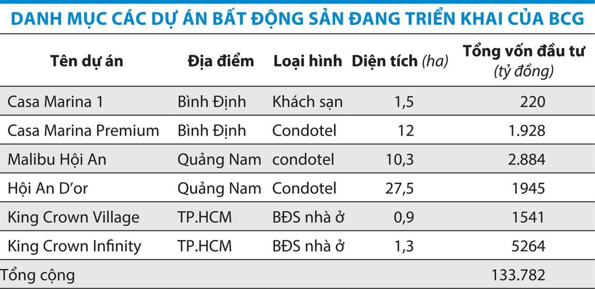 Đối với lĩnh vực bất động sản, tác động đến các dự án bất động sản nhà ở sẽ không lớn do BCG nhắm đến phân khúc khách hàng trung và cao cấp, một số dự án hiện đã được bàn giao cho khách hàng và dự kiến sẽ ghi nhận doanh thu còn lại trong giai đoạn 2021 - 2023.