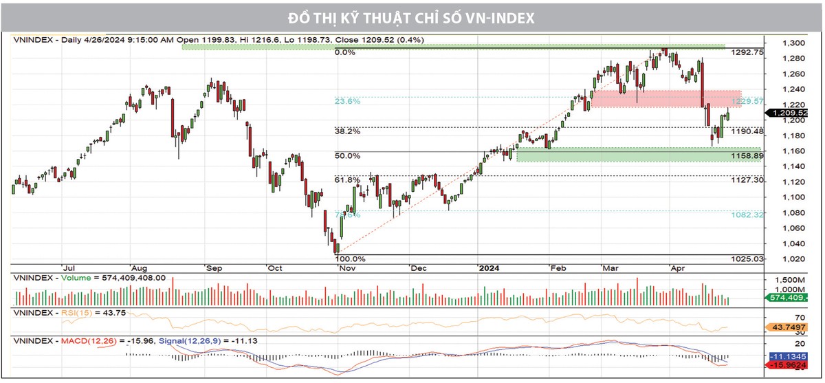 Vì vậy, nhịp hồi phục hiện tại được đánh giá là hồi phục kỹ thuật và cần được xác nhận. Ngưỡng hỗ trợ 1.150 điểm có thể sẽ được VN-Index kiểm tra, bởi ngưỡng hỗ trợ tâm lý 1.200 điểm chưa thực sự vững vàng.