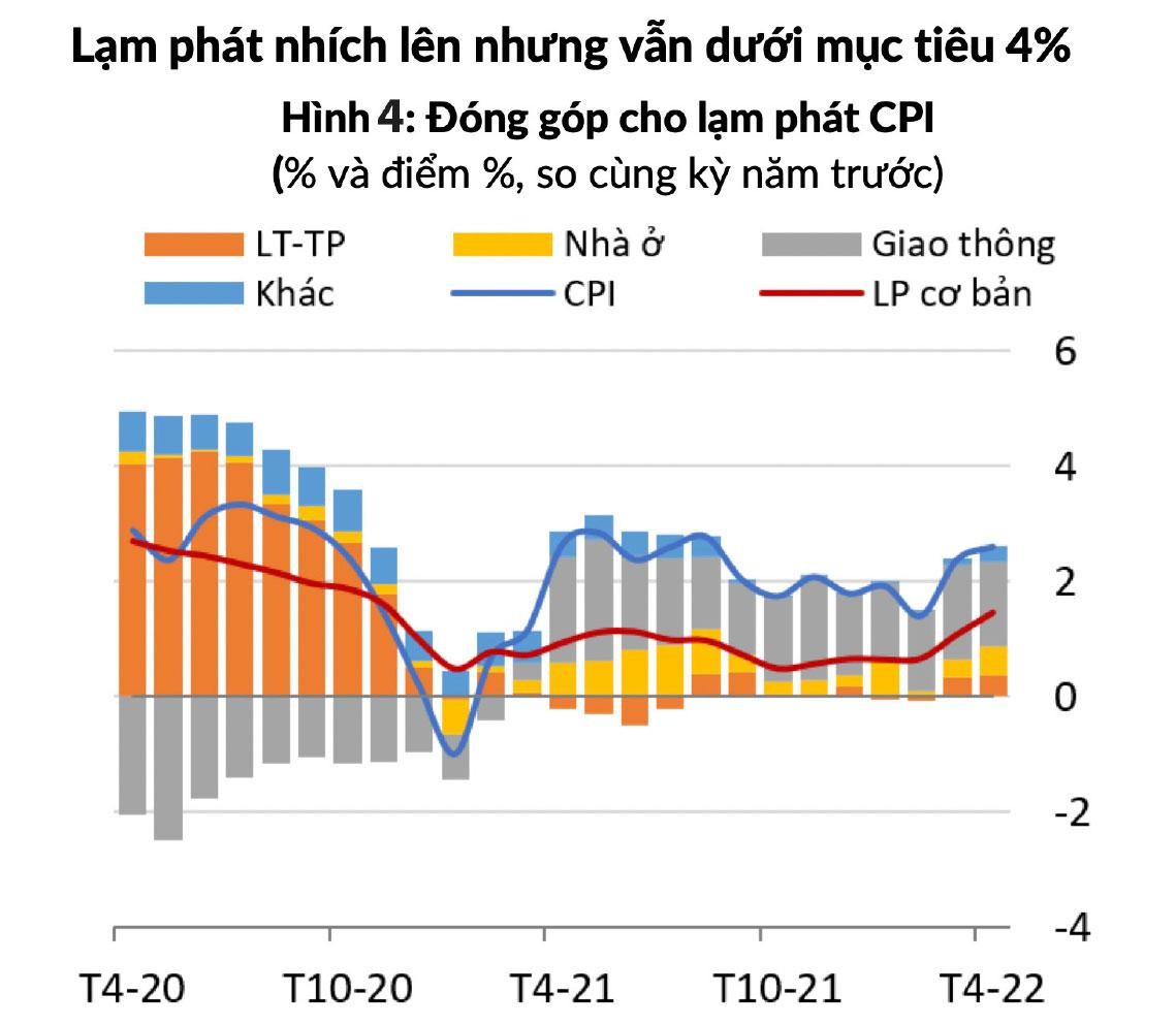 Tuy nhiên, do kinh tế Việt Nam trải qua 2 năm tăng trưởng rất thấp so với tiềm năng (2020 tăng 2,91%, 2021 tăng 2,58%), đồng thời các gói đầu tư công nhằm hỗ trợ phục hồi tăng trưởng chưa được giải ngân nhiều như kỳ vọng, do đó áp lực lạm phát hầu như chưa có tác động của tổng cầu.