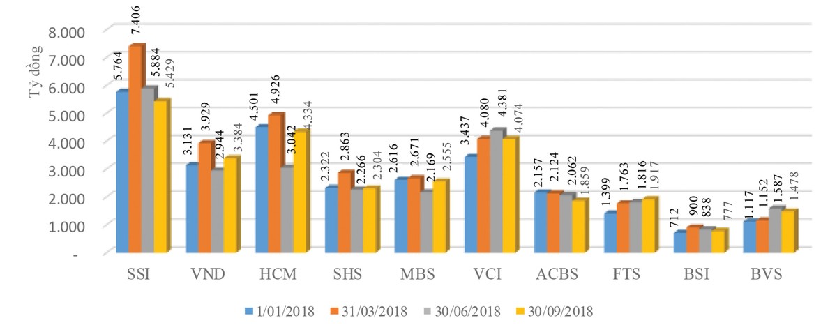 Biến động dư nợ cho vay của một số CTCK trong 9 tháng đầu năm 2018.