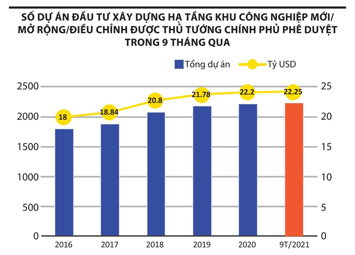 Số liệu của Savills Việt Nam cho thấy, nhiều khu công nghiệp mới đã được thành lập ngay trong dịch và các dự án công nghiệp trọng điểm bắt đầu hoạt động trở lại ngay sau giãn cách. Tính từ đầu năm 2021 tới nay, có 25 khu công nghiệp mới được thành lập, tăng 19 khu so với cùng kỳ năm 2020.