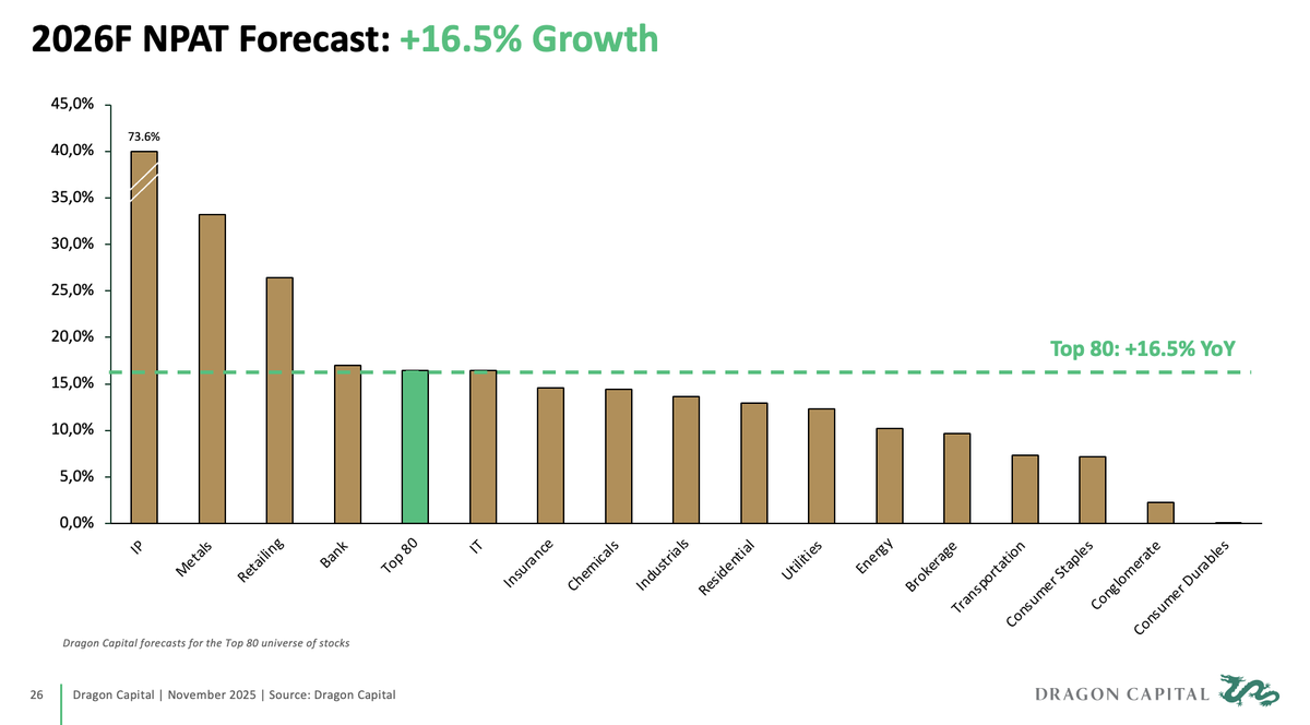 “Dự báo cho năm tới, dù không muốn quá lạc quan, thì tổng lợi nhuận bình quân sẽ vào khoảng 16 - 17%. Việt Nam đang ở một chu kỳ khá thuận lợi, có thể thấy tốc độ phát triển lợi nhuận của các Công ty đang mở rộng và đi lên", Chủ tịch Dragon Capital khẳng định và nhấn mạnh thêm, điều kiện đối với thị trường chứng khoán Việt Nam, các công ty và dòng vốn là tương đối thuận lợi cho năm 2026.