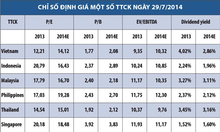 TTCK Việt Nam nói chung vẫn đang có mức định giá tương đối hấp dẫn so với các TTCK trong khu vực Đông Nam Á (xem bảng). Chúng tôi nghĩ rằng, đây là cơ hội đầu tư tốt cho các nhà đầu tư tài chính bắt đầu tham gia vào thị trường, cũng như cho các nhà đầu tư hiện hữu củng cố danh mục đầu tư.