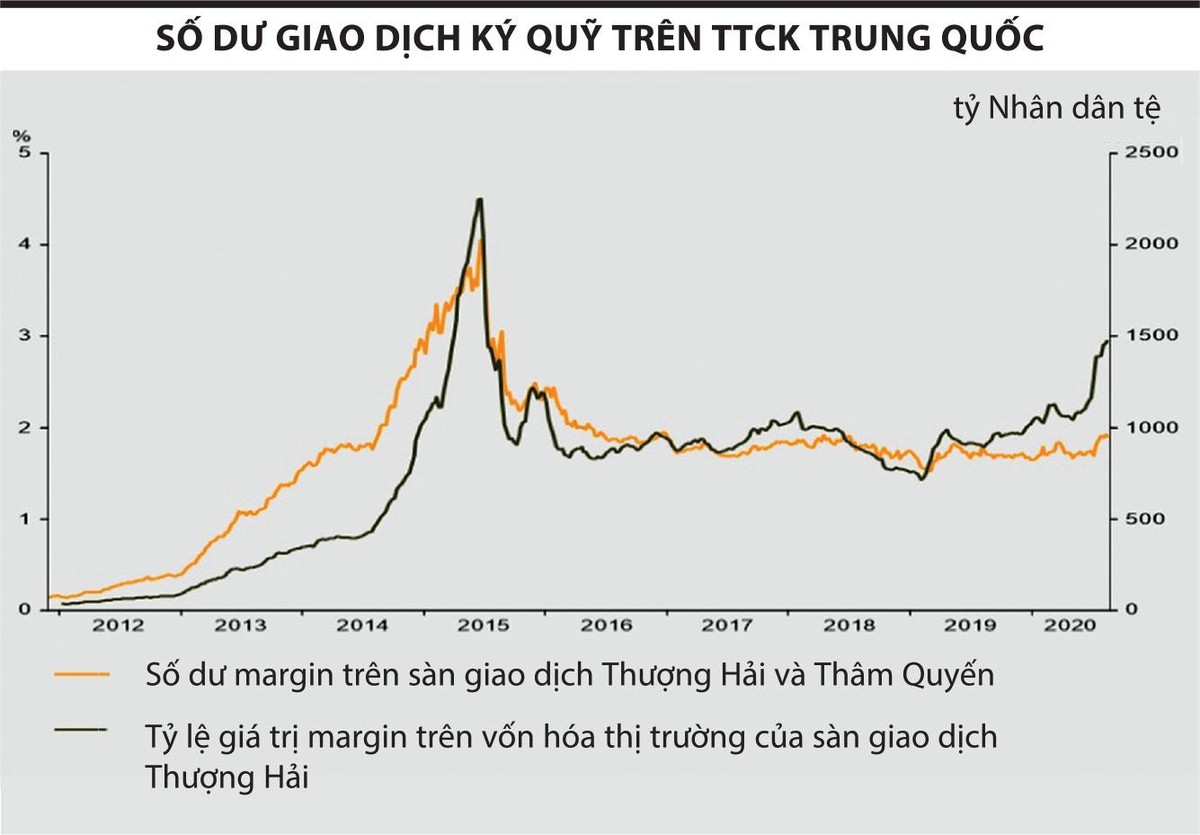Dòng tiền cá nhân chảy mạnh vào thị trường đã giúp chỉ số chứng khoán liên tục “bay cao bay xa” trong thời gian qua khiến nhiều người liên tưởng tới diễn biến của thị trường cổ phiếu Trung Quốc giai đoạn 2015. Cụ thể, từ cuối năm 2014 đến giữa năm 2015, số lượng tài khoản mở mới trên thị trường này ghi nhận con số 30 triệu. Chỉ số Shanghai Composite đã tăng từ 2.000 điểm lên 5.500 điểm chỉ trong vòng 6 tháng.