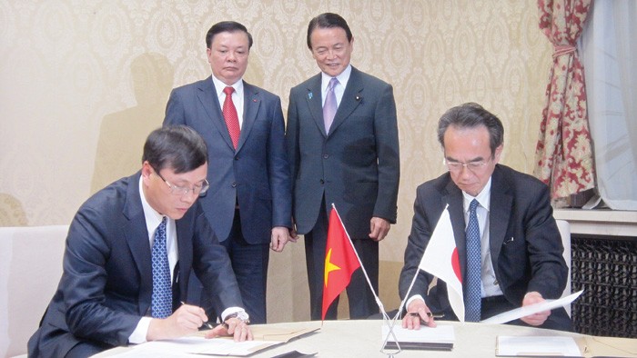 Ông Vũ Bằng, đại diện cho ngành chứng khoán Việt Nam ký thỏa thuận hợp tác với đối tác Nhật Bản