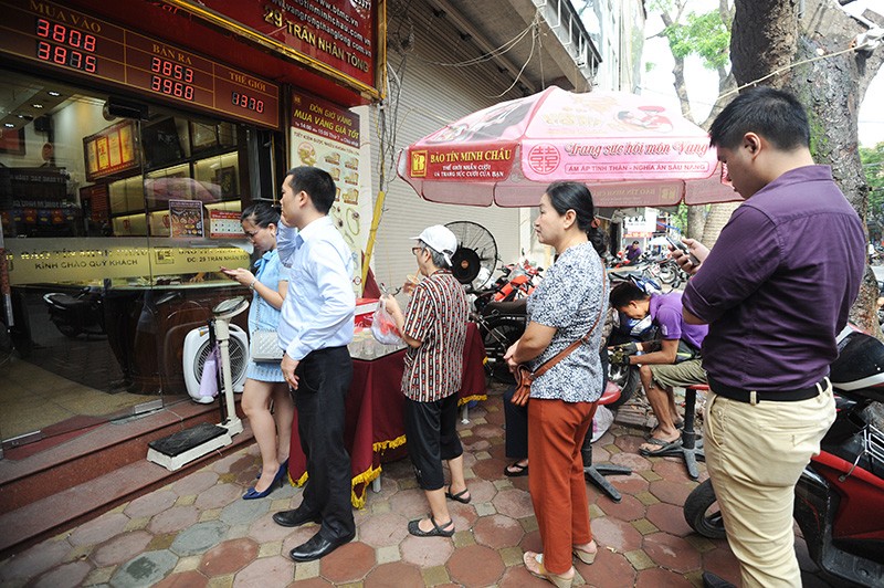 Đúng 8h30 các cửa hàng mở cửa, người dân ùn ùn vào mua bán vàng