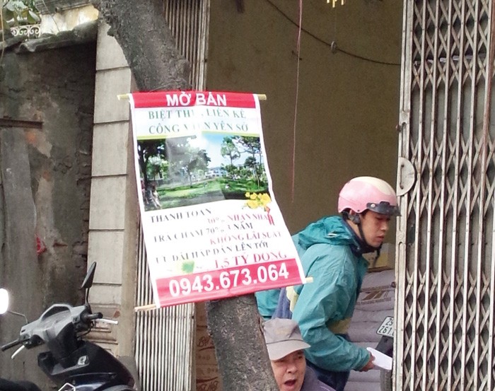 Nhìn cũng khá vui mắt. Chỉ có điều chả hiểu sao, có những dự án được quảng cáo “giới thiệu cái là hết ngay” hay “đã có tiền chênh" mà vẫn phải chen chúc nơi gốc cây, cột điện.