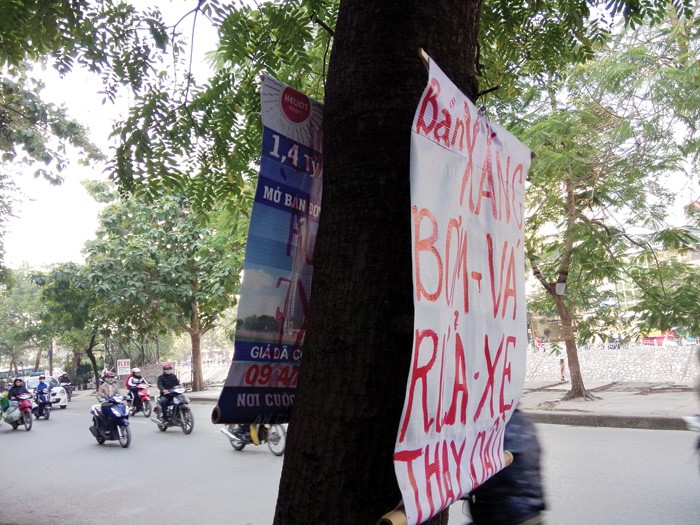 Nơi ngã tư đường đèn xanh đèn đỏ là vị trí đắc địa. Ai cũng muốn bon chen nên gốc cây được tận dụng không còn chỗ trống