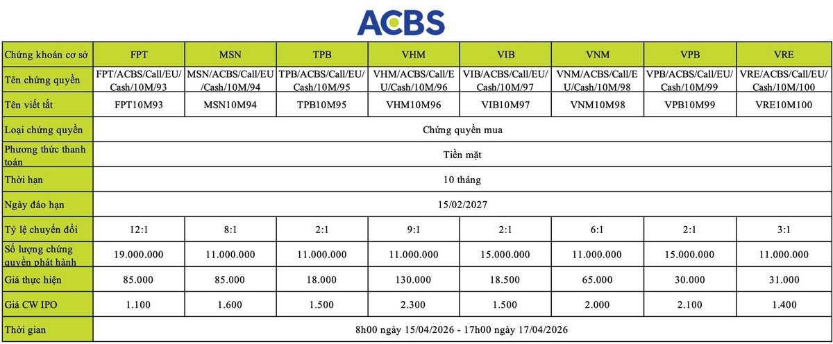 Thời gian nhận đăng ký mua: 8:00 ngày 15/04/2026 - 17:00 ngày 17/04/2026