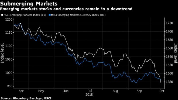 Chỉ số MSCI các thị trường mới nổi đang trên đà xuống dốc