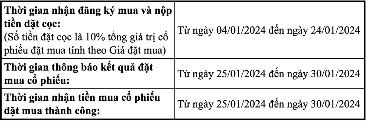 Cổng đăng ký và mua cổ phiếu chào bán lần đầu ra công chúng của DNSE mở từ 8h ngày 04/01/2024 đến 16h ngày 24/01/2024. Giá chào bán khởi điểm 30.000 đồng/cổ phiếu. Mỗi nhà đầu tư được đăng ký mua tối thiểu 1.000 cổ phiếu, tối đa 16.499.900 cổ phiếu (không quá 5% sau IPO), bước khối lượng là 100 cổ phiếu.