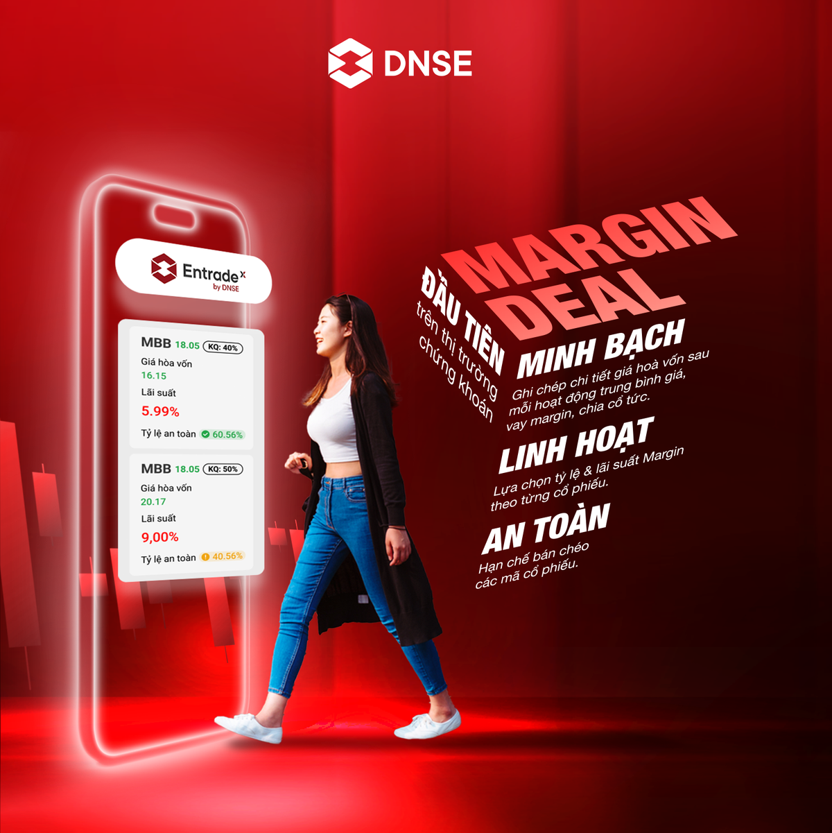 Kỳ vọng mang đến lời giải cho những hạn chế hiện tại của cách thức giao dịch truyền thống, Margin Deal là sản phẩm đầu tiên tại Việt Nam ứng dụng hình thức Isolated Margin ưu việt của thế giới. Đây là hình thức cho vay, quản lý dư nợ, lợi nhuận theo từng giao dịch mua bán thay vì trên tổng tài khoản như phương thức truyền thống – Cross Margin. Hệ thống Margin Deal của DNSE được đánh giá là một bước tiến tiên phong, mở ra bước ngoặt mới cho thị trường chứng khoán Việt Nam.
