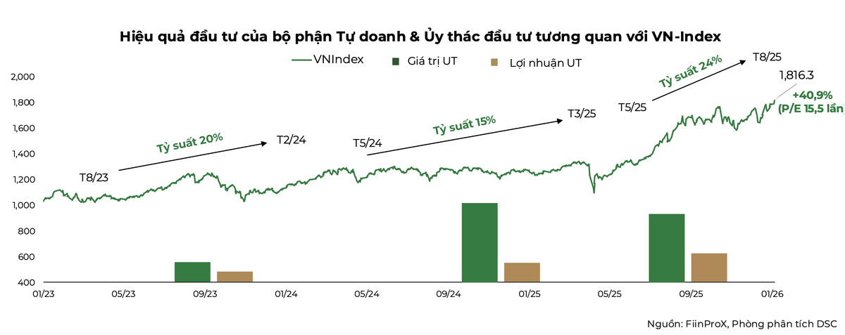 Một điểm sáng nổi bật trong năm 2025 là hiệu quả vận hành được cải thiện rõ rệt. Tỷ lệ chi phí trên thu nhập (CIR) giảm mạnh xuống mức 47%, thấp hơn khoảng 10 điểm phần trăm so với năm 2024. Kết quả này đến từ mô hình hoạt động kinh doanh tinh gọn, tập trung vào các mảng có biên lợi nhuận cao, đặc biệt là tự doanh, uỷ thác đầu tư và ngân hàng đầu tư, qua đó tối ưu hóa chi phí và gia tăng chất lượng lợi nhuận.